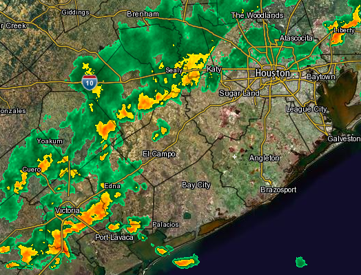 Rain and thunderstorms headed toward the Houston-Galveston areas on the last day of Sept 2018.