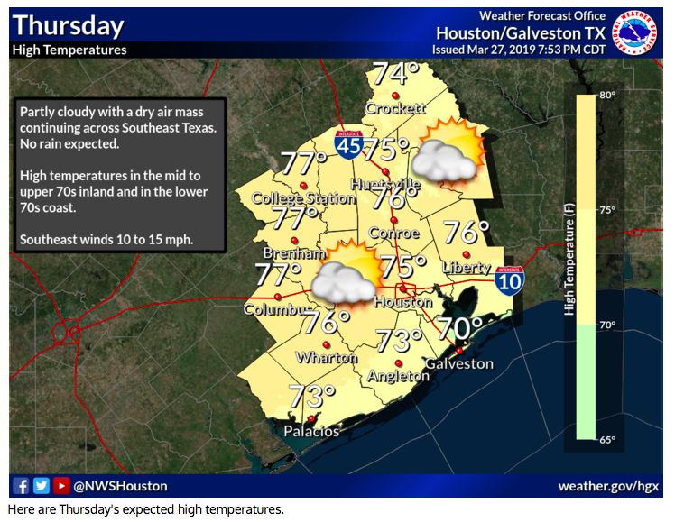 Houston (IAH) 75 61 77 63 79 / 0 10 20 10 40