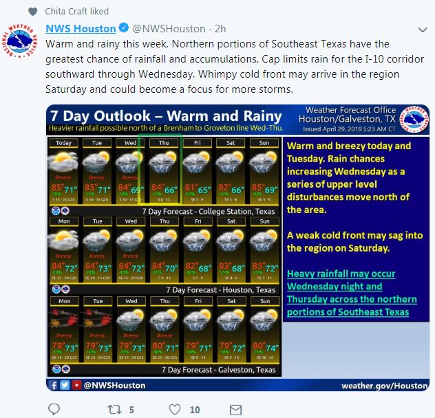Cpv17 wrote: Sun Apr 28, 2019 4:54 pm According to the 12z Euro, next Saturday is the day to watch for us here in southeast TX.