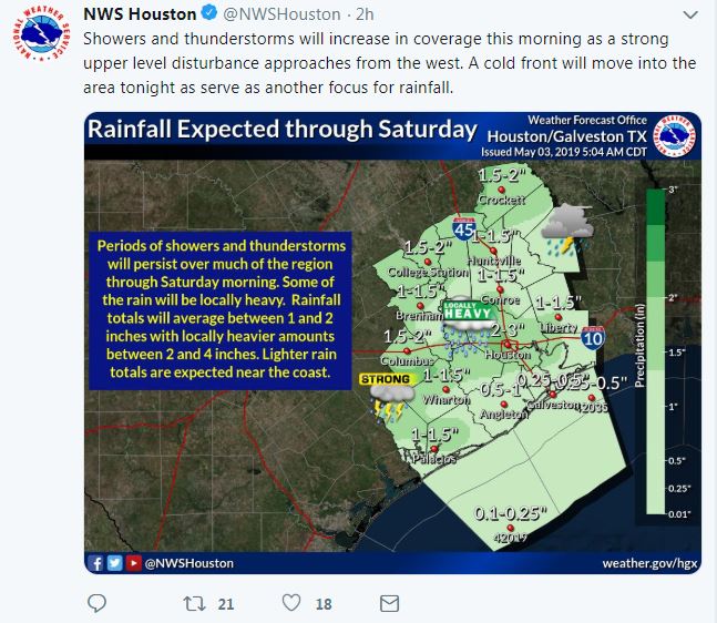 Another active weather day across a large portion of TX. Ongoing strong to severe thunderstorms across Central and STX this morning. The SPC has a Slight Risk area for STX and most of TX in a Marginal Risk area. Strong to severe thunderstorms and locally heavy rain will be possible across SE TX this afternoon, overnight, and into Saturday morning. Clearing skies tomorrow afternoon and a mostly sunny Sunday on the way.