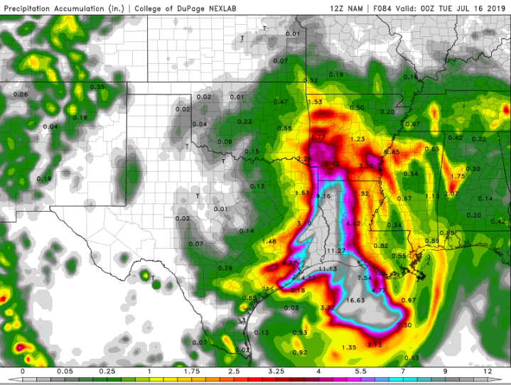 That's a possibility. Will depend on where Barry moves inland in relation to us. Models seem to be latching on the idea that once Barry makes landfall in central Louisiana, that the motion will generally be NW up into Texarkana by Sunday. With the flow around this, it could set up one of the heavy rainbands on the southern end of the storm along I-10.sau27 wrote: ↑Fri Jul 12, 2019 10:54 am A bit of a tangent (but somewhat on-topic) - I have seen mentioned in a couple of places the possibility of a convergence zone forming late Saturday into Sunday somewhere in our neck of the woods which could produce a bout of heavy rain. I have been scouring the models and am having a hard time finding it. I am assuming it is a speed convergence zone I am looking for, but was wondering if anyone could help guide me to the right spot.