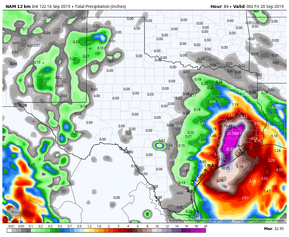 srainhoutx wrote: Mon Sep 16, 2019 10:55 am 24 inch amounts across portions of SE Texas via the 12km NAM 12Z over a 84 hour period.