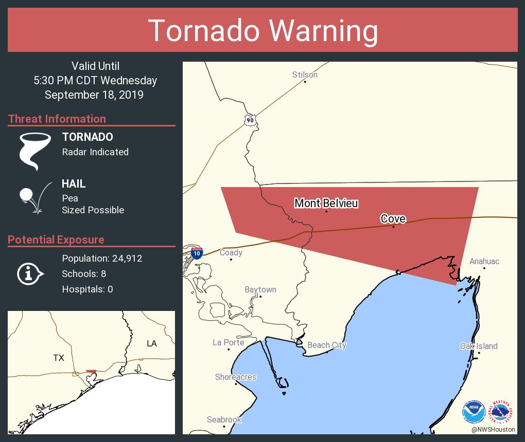 was located near Mont Belvieu, or near Highlands, moving east at 20