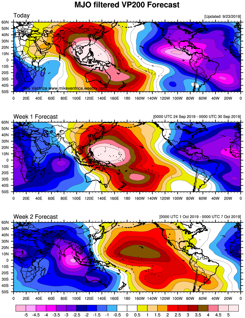 As mentioned around mid September, a very conducive Hemispheric Pattern for the Atlantic Basin has arrived. The MJO is in Phase 1 as well as lower pressures and rising air and the strongest Convectively Couple Kelvin Wave of the Hurricane Season is right overhead. I am not surprised to see the Tropics active and I am certainly not surprised the computer models are indicating activity. As that strong CCKW passes, I suspect we will see additional development in the Atlantic Basin. Fingers crossed for that first cold front real soon...