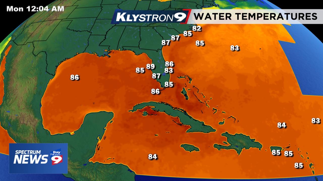 and inland areas just creeping into the 90s. Overnight lows remain