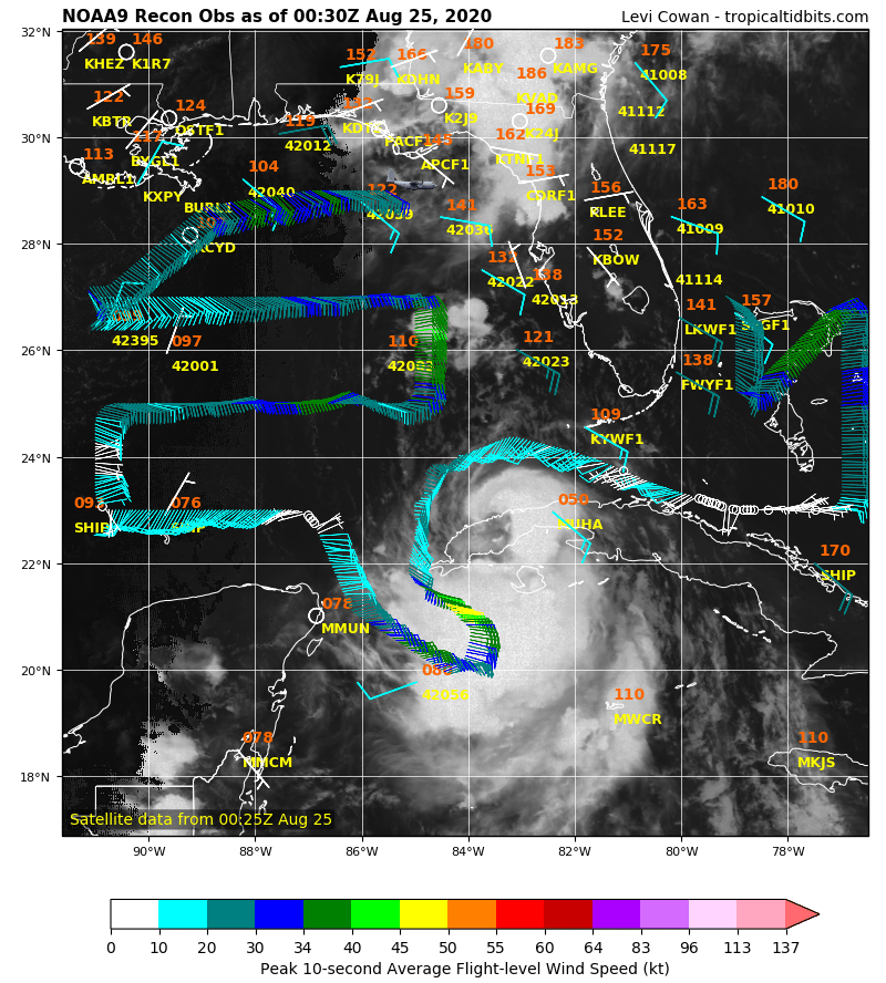 We will see benefits of the data from the high altitude mission that sampled the atmosphere around 45000 ft. That data will assist in track and intensity potential. We will just have to wait and see about the big old Bermuda Ridge. It's currently building W across the Florida Peninsula.jabcwb2 wrote: ↑Mon Aug 24, 2020 7:56 pmGosh, what does that mean for us lurkers?srainhoutx wrote: ↑Mon Aug 24, 2020 7:54 pm Levi makes good points regarding the strength of the Bermuda Ridge. If in fact it is stronger and further East than currently modeled, that does not bode well for the Texas Coast. Unfortunately it looks like the G-IV synoptic mission wrapping up may have missed sampling due to the pre scheduled mission plan. Regardless, we'll have that data for the 00Z suite of models.