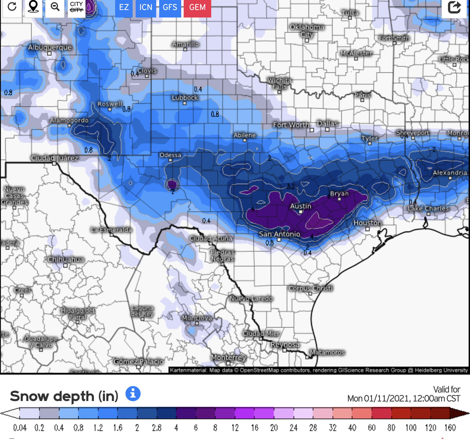 Texashawk wrote: Mon Jan 04, 2021 10:49 pm David Paul seems supremely unconcerned with the possibility. And he’s usually pretty good about pointing out weather outlier possibilities well in advance...