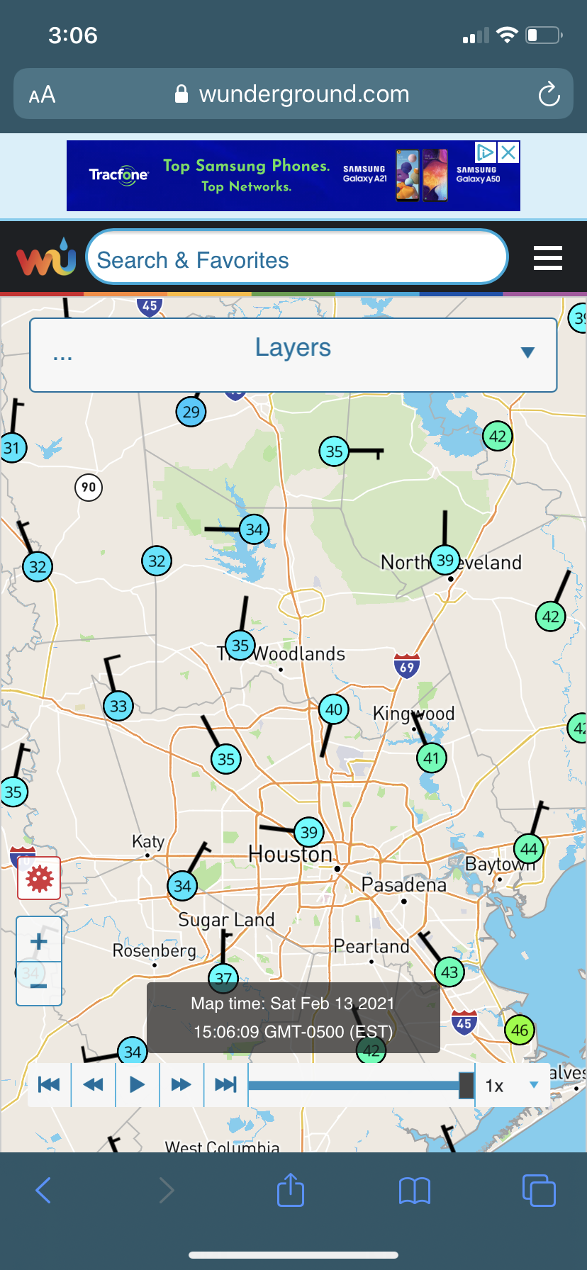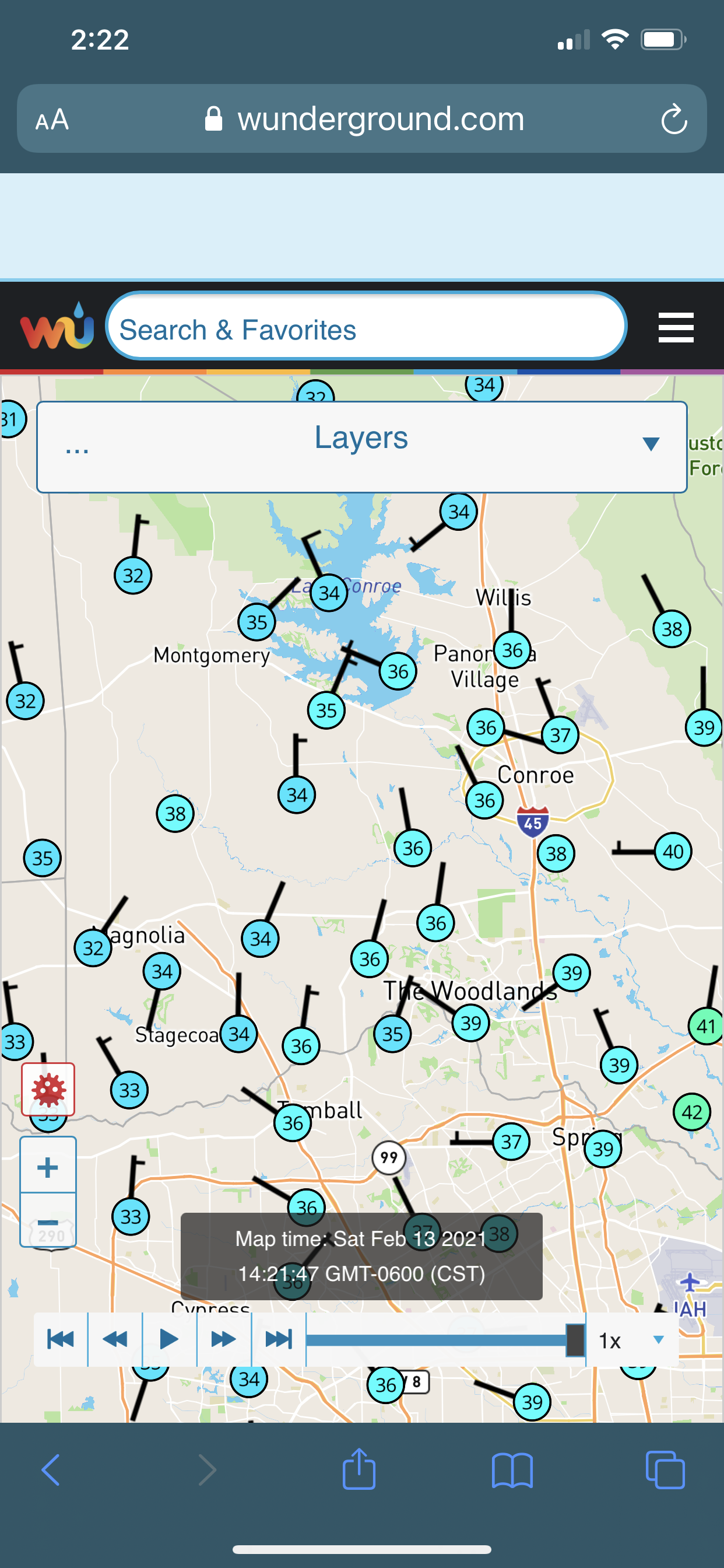 Cpv17 wrote: Sat Feb 13, 2021 3:27 pm I’m at 33 degrees here in central Wharton County. Quite a bit colder than y’all in Houston.