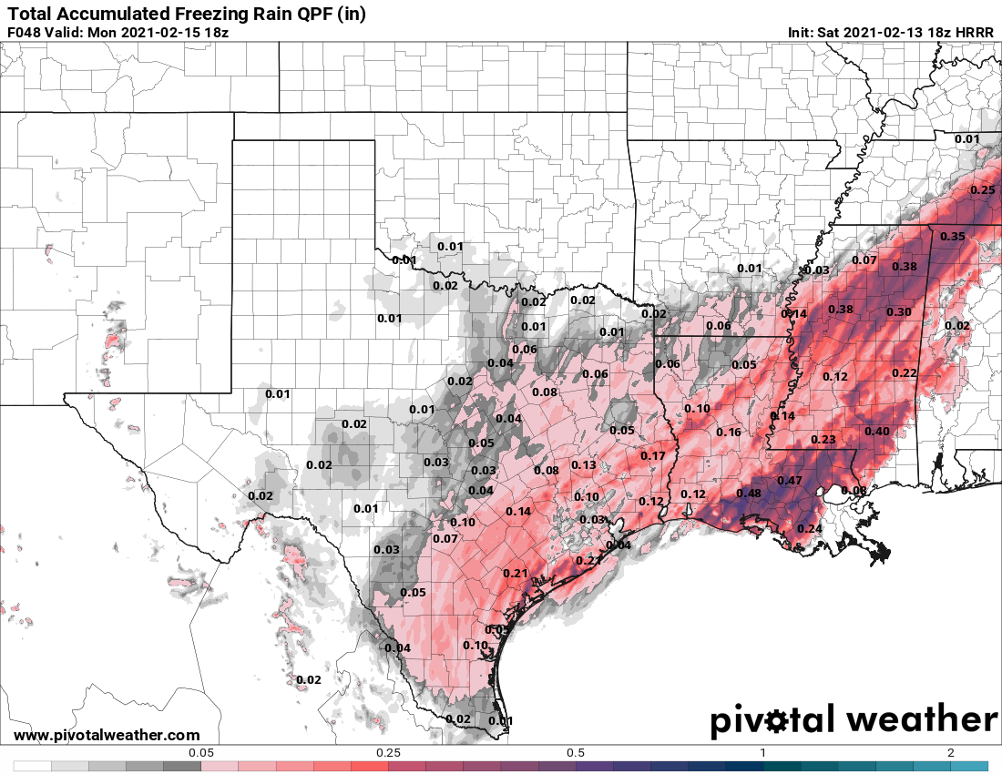 srainhoutx wrote: Sat Feb 13, 2021 2:43 pm 18Z HRRR ice and snow through 48 hours.