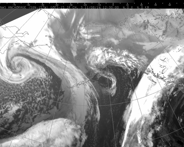 Extratropical Tropical Storm Nuri surpasses the lowest pressure recorded in Dutch Harbor, AK in October 1977 by 1 MB. The reading recorded in October 1977 was 925mb and ET Nuri is now 924mb with the latest analysis.