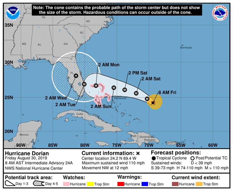 Dorian is expected to be a very intense hurricane making landfall in the highly populated areas of EC/SE FL coast early next week.