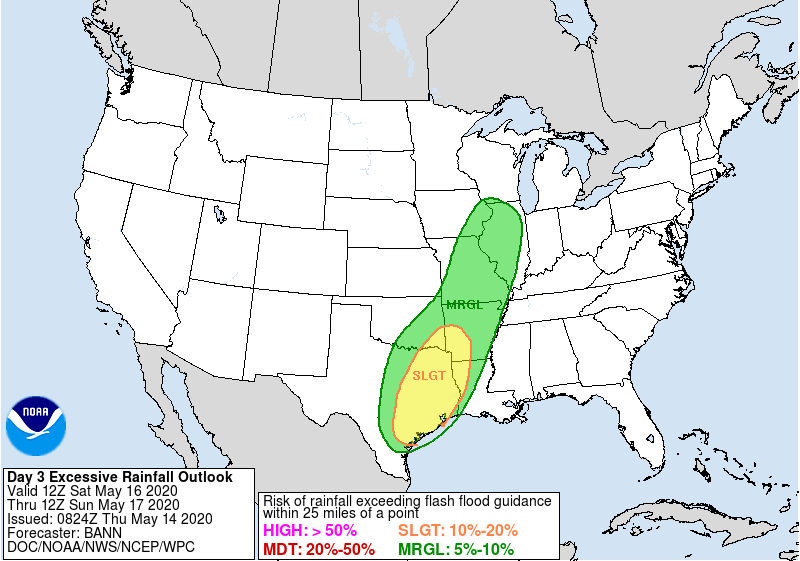 Will start with the good news for the weekend system and that is models are trending toward a faster moving weather system and no longer stall the upper level low over TX. With that said, the threat for heavy to excessive rainfall in the Saturday-early Sunday period remains.