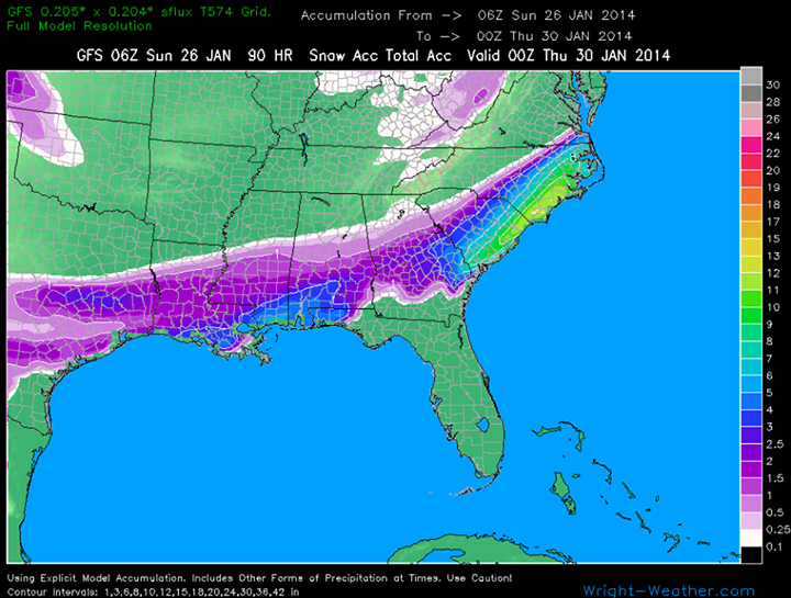 Current models are indicating more snow for New Orleans than Houston, and up to 3-6" for the MS Coast.Snowman wrote:Can someone tell me what may be in store for New Orleans? It won't be as cold as in Houston so are we looking at more ice than snow here? Thanks for any input.