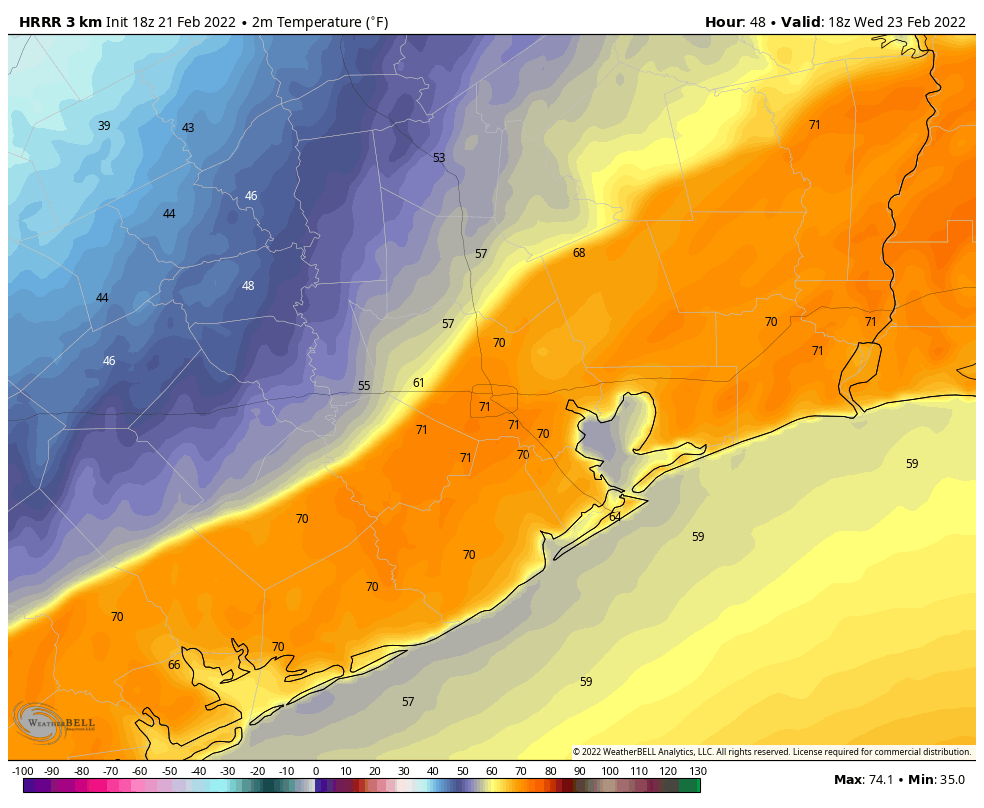 Concrete is sweating here at my job too in Rosenberg. I hate when that happens. It makes such a mess everywhere. Like a pig slop.jasons2k wrote: ↑Mon Feb 21, 2022 1:02 pmGeez I sure hope not. It just hit 80 here. The concrete is sweating. I wish the return flow would stick around but Mother Nature obviously has other plans. I expect the NWS to lower their numbers soon. The colder and faster trend on the meso models is for real.