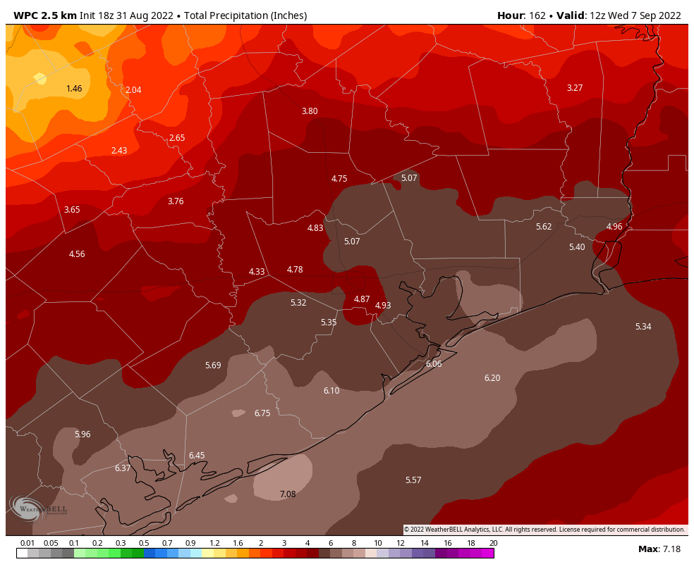 tireman4 wrote: Wed Aug 31, 2022 1:21 pm If this is spread over a couple of days, we "should" be ok. We are nearing saturation points, so we must be mindful of that going into the weekend.