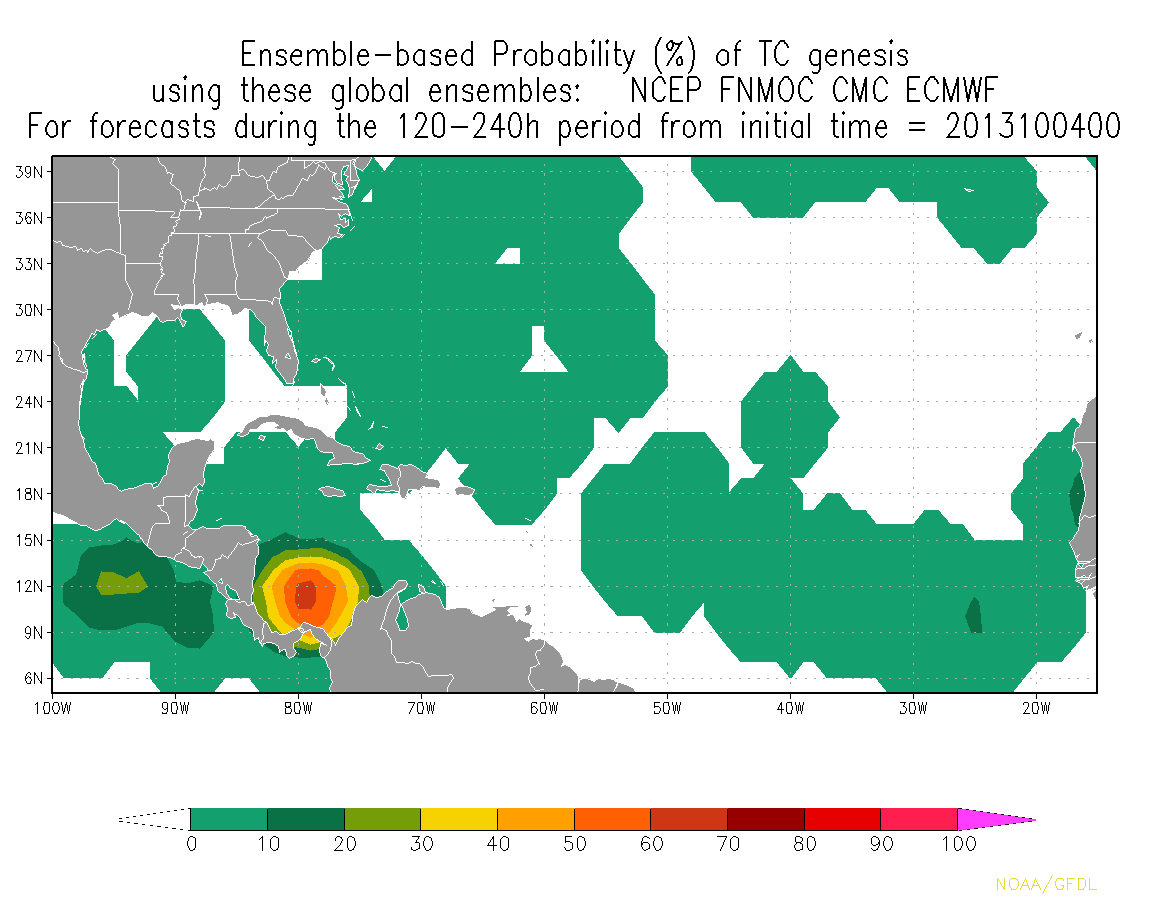 10042013 00Z Multi Model Ensemble TC Genesis Probs genprob_4enscon_2013100400_altg_120_240.png