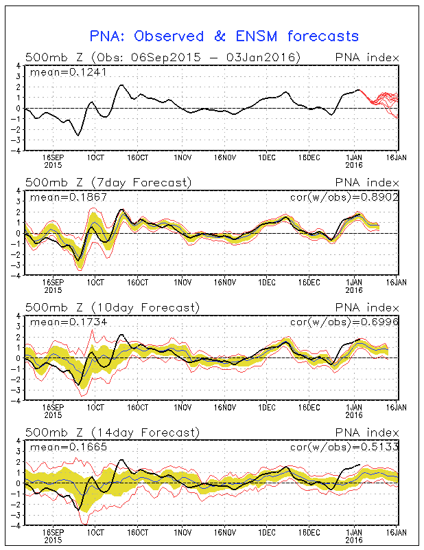 The Arctic Oscillation continues to crash nearing -2 with the ensembles suggesting -3 may well be possible in the next 5-7 days. The Pacific North America (PNA) also has risen to very near +2 with the ensembles suggesting it will remain positive for the foreseeable future.