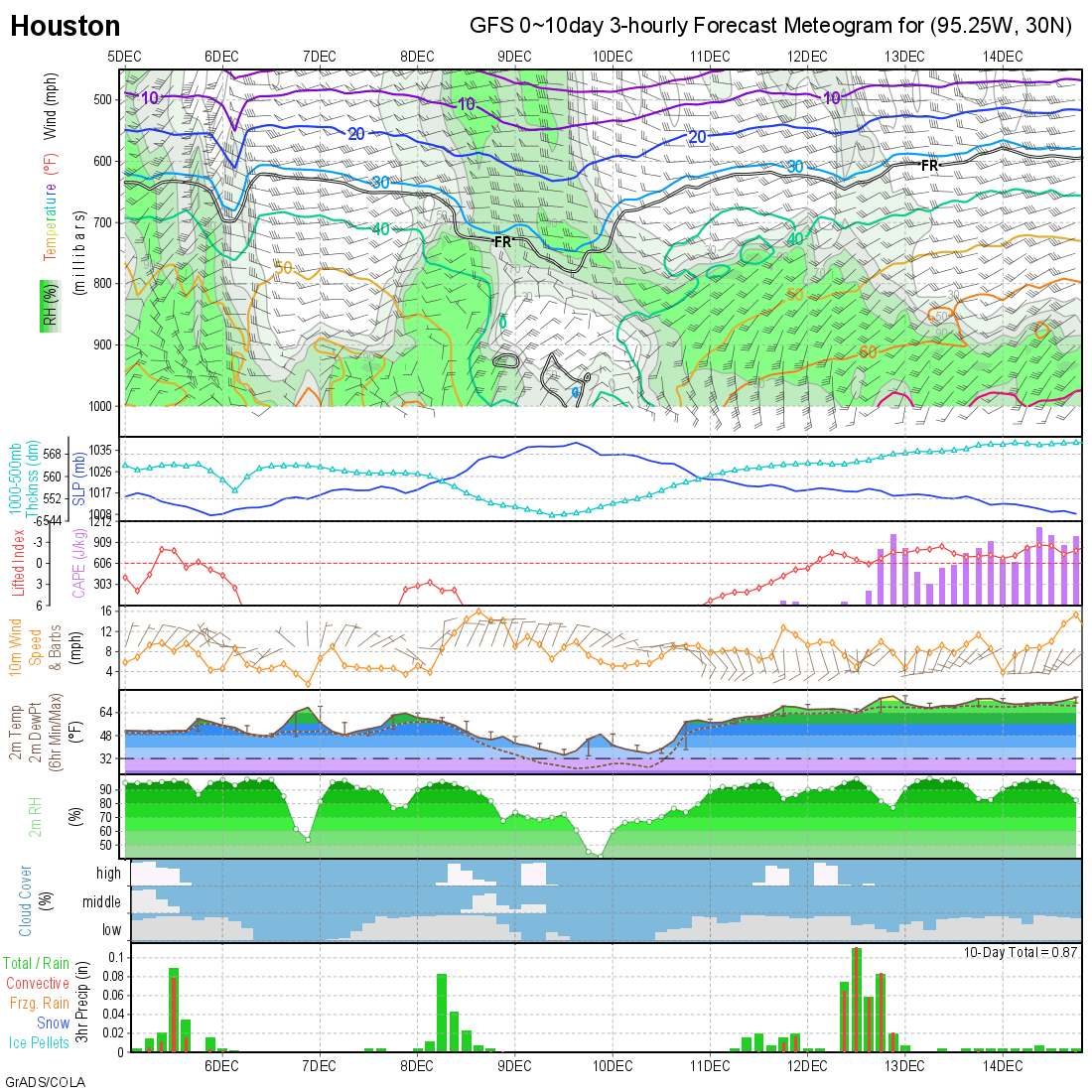 The big weather story next week will be the cold air spilling across the Plains from Canada to the GOM. Still many days out but a freeze down to Houston metro is being advertised by models with the potential for a light freeze to the immediate coastal areas late next week.