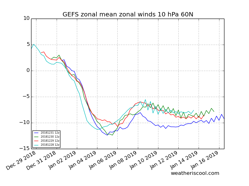 A lot of people have been on the mid January train. If that comes to fruition, then we should start seeing it show up on the models within another 10 days or so.harp wrote: ↑Sun Dec 30, 2018 3:14 pmSo, you are not throwing in the towel yet.srainhoutx wrote: ↑Sun Dec 30, 2018 3:07 pmMJO has been meandering around in Phase 5 versus progressing into Phase 6. All the Global computer schemes missed that including the "so called" King Euro. See tropical activity in the Southern Indian Ocean as well as convection in the tropical West Pacific. Without getting too technical, the models have struggled with the North Pacific pattern and that may continue over the next week. Now add a very impressive Sudden Stratospheric Warming Event that has been extremely impressive the past 24 hours or so. Now look at volitily we have seen with this weekend and mid week. Mood swings among winter weather lovers as been in overdrive. Remember that Hemispheric and even Global weather patterns do not change on a dime. Heck, we are still waiting on official El Nino to be declared...![]()