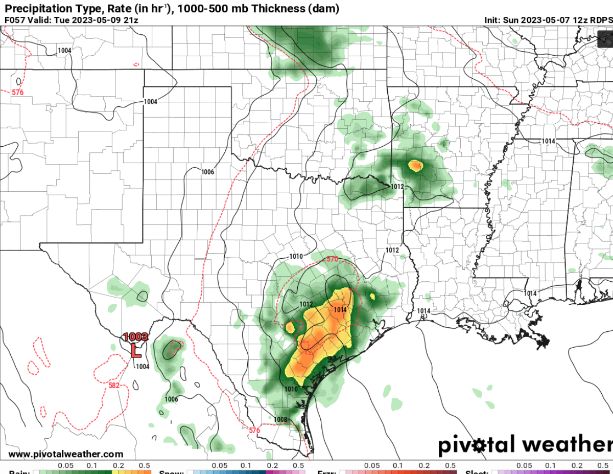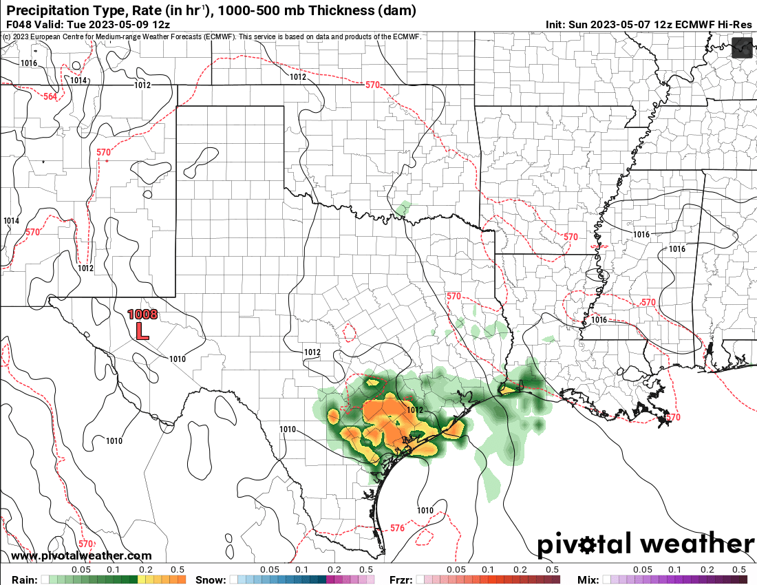 don wrote: Sun May 07, 2023 1:44 pm 12Z EURO showing the surface low taking shape on Tuesday.Then moving into north Texas and becoming a tropical like low with a feeder band draped over the area.Screenshot 2023-05-07 at 13-17-19 Models ECMWF Hi-Res — Pivotal Weather.png.Screenshot 2023-05-07 at 13-16-55 Models ECMWF Hi-Res — Pivotal Weather.pngScreenshot 2023-05-07 at 13-17-42 Models ECMWF Hi-Res — Pivotal Weather.png
