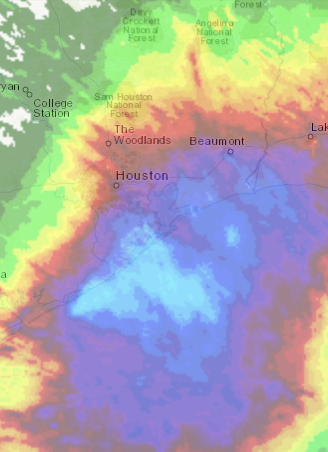 I'm ticked off at how quick the greedy local TV stations bailed on coverage overnight and now. Other than a brief update, post-midnight when it was coming ashore and peaking on the south and southeast of the metro I could only find online for 2 was streaming vid of someone driving around, 13 had a cam of a light pole with rain, KHOU was running a minute loop of some maps (starting to get stale) and radar. Can't find any live broadcast online now, I guess they pulled the plug after the Harris County judge spoke. I don't have any of their stupid apps, so don't know if they're still live on those with any actual content beyond a few graphics.