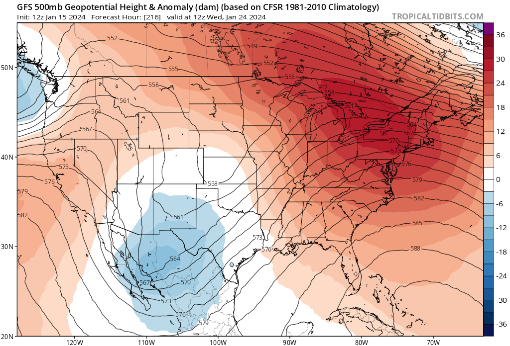 This looks like it could be our biggest rain event since last spring.don wrote: ↑Mon Jan 15, 2024 2:49 pmYep a classic El nino pattern with a large trough digging into Mexico and becoming cut off.Cpv17 wrote: ↑Mon Jan 15, 2024 2:40 pmThis upcoming wet period looks much different than previous events. My confidence is pretty high this time around.Stratton20 wrote: ↑Mon Jan 15, 2024 12:03 pm Pattern looking wet? Ill believe it when i see it, models have burned us way too many times….
