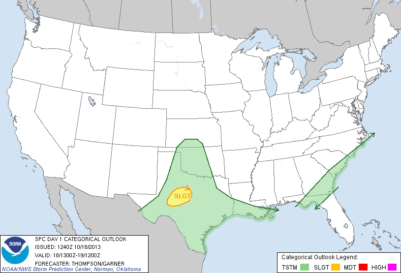 SPC issues Slight Risk for severe storms for portion of the Permian Basin and Edwards Plateau for later today as a long wave trough and upper air disturbance that has brought snow to the higher elevations near Denver over night sweeps SE and another disturbance rides NE out of Mexico into Texas. The 06Z short range guidance is suggesting showers and storms will develop later tonight into early Saturday and increase rain/storm chances across Central and SE Texas in a very progressive fast moving pattern.