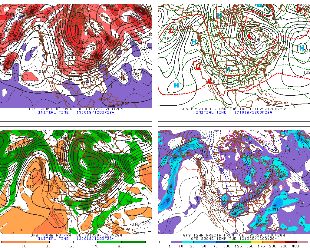 That 'Blue Norther' we have been discussing is still suggested by the GFS. It appears the Southern Rockies may see a significant snow storm extending into the front range and as far S as Albuquerque and strong storms sweeping across Texas as that front races S.