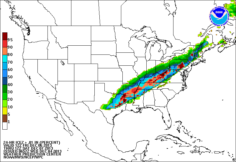 HPC/WPC Forecaster Kocin is at the forecast desk this afternoon and he has updated the icing potential and as we can see, the chances have increased for portions of Central and SE Texas.