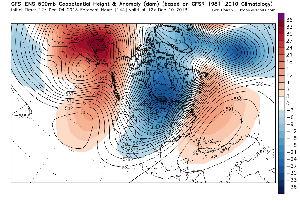 The 12Z GEFS (Ensemble Mean) suggest very chilly air, some potential for precip as the previously mentioned short wave does cross our Region and a 500mb Anomaly pattern is suggesting early/mid next week could definitely be nasty, if that ensemble guidance is correct.