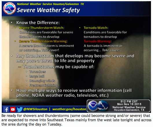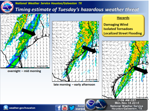 - A WIND ADVISORY IS LIKELY TONIGHT AND POSSIBLY TUESDAY MORNING AT LEAST WEST OF I-45 AND ALONG THE COAST.