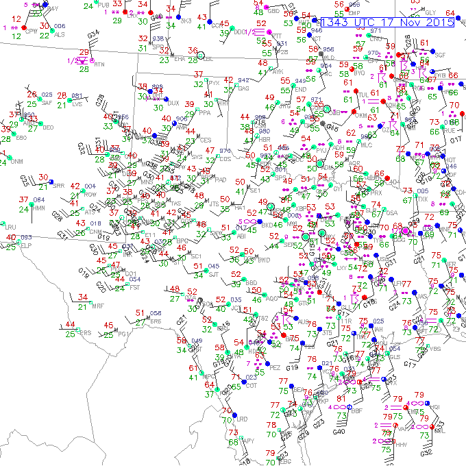 A NWD-MOVING DIFFUSE FRONTAL ZONE FORECAST TO MOVE INTO OK LATER