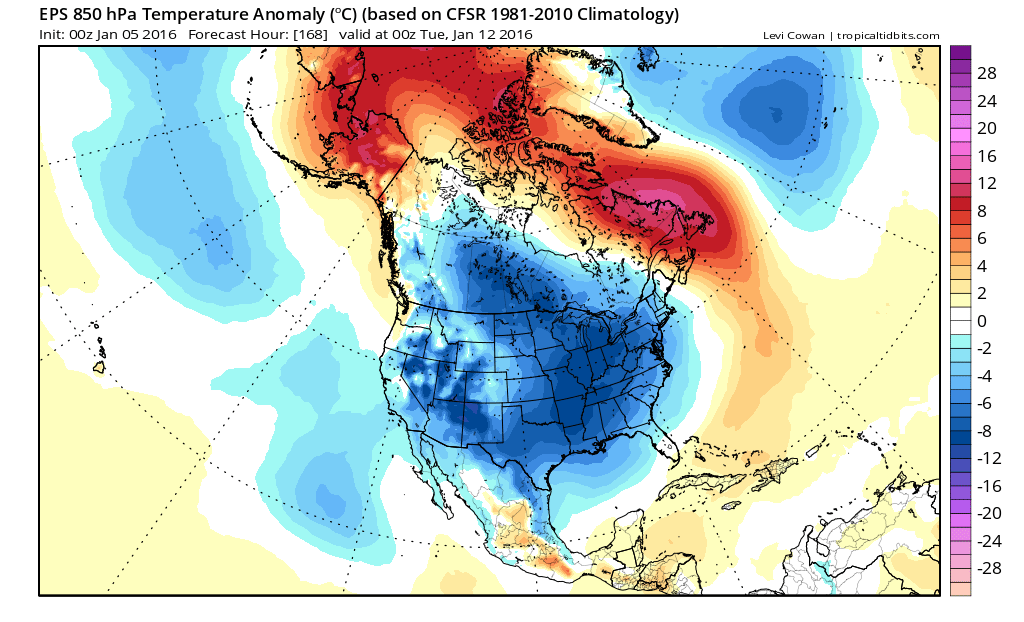 Seriously IMUO (In My Uneducated Opinion) I don't see how northern Alabama escapes the below-to much below normal airmass during that period. Other thing that would prevent it would be a screaming Pacific jet shunting the cold air to the Great Lakes and Northeast. Whether the large trough sets up over the central or eastern US ... that cold air will plunge south into the land of Lynyrd Skynyrd. Dress warmly!