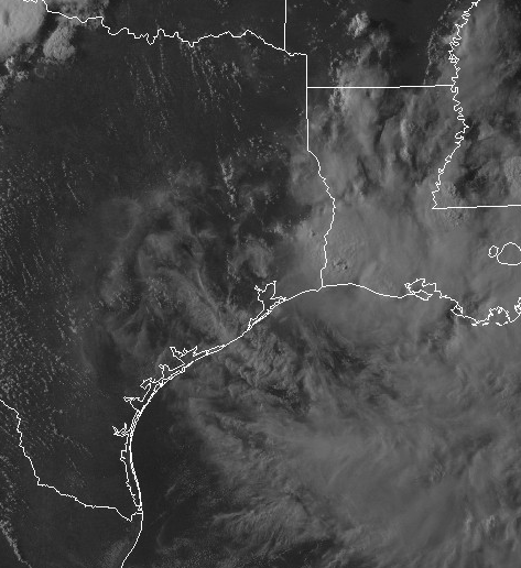 Inverted westward moving mid level trough over the central Gulf coast states this morning with some very impressive PWS values of 2.5-2.7 inches will slowly work westward and into eastern TX over the next 48 hours. At the same time an upper level trough will approach from the west and help break down the ridge of high pressure over TX which has been in firm place for the last 5-8 days.