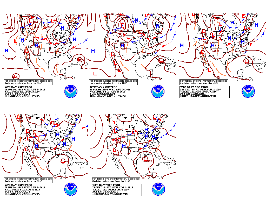 The afternoon updated Weather Prediction Center Day 3 to 7 surface charts suggests the surface reflection of potential Hermine will be South of Louisiana next week. I see no reason to dismiss a potential Gulf of Mexico scenario regardless of the daily shifts of the operational guidance. The SE Ridge has been very strong all late Spring into Summer. I see no significant changes via the ensembles that the persistent SE United States/Bermuda Ridge will quickly disappear.