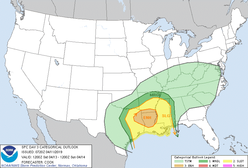 A severe weather outbreak appears to be increasingly likely Saturday over portions of Louisiana and eastern TX. All severe modes including tornadoes will be possible.