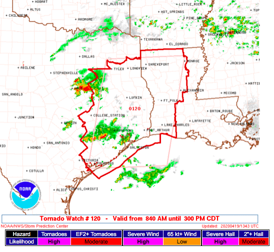 Note: During early morning hours (approximately 6am Central time), the SPC will produce a multimedia briefing MP4 file shortly after the PWO issuance. Please check back momentarily for a link to this MP4 file on this page. Please note the briefing may be out of date 5 hours after its issuance and there will be no subsequent updates during the day. Please send comments or questions to spc.feedback@noaa.gov or via the feedback page.