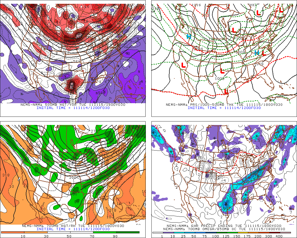 The models are all (NAM, GFS, Euro, Ukmet & Canadian) in agreement with timing and strength of the upper low currently onshore in Mexico, E of the Baja. Now we wait and see if things pan out as expected and perhaps monitor the shorter range meso models (HRRR, SREF, RUC) for any subtle changes.