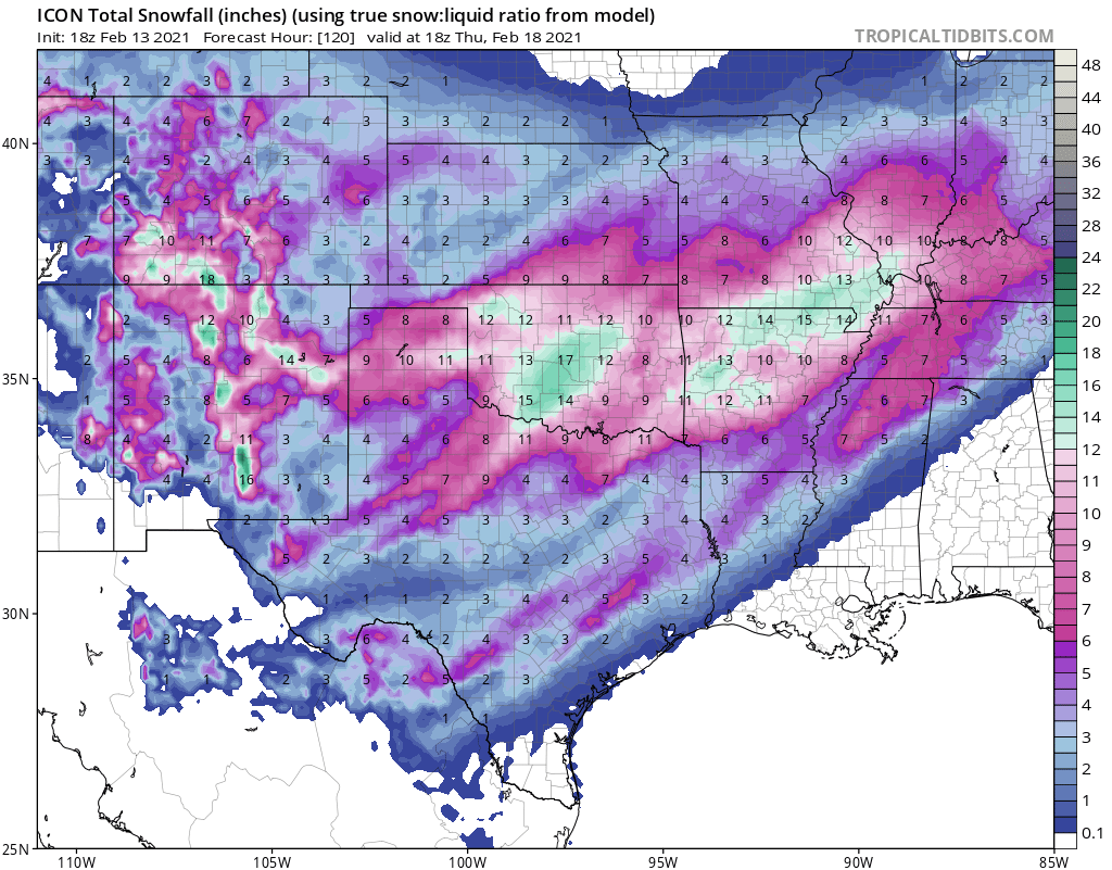 Imagine if that is all snow! If that were to happen, that’s over a foot of snow.. Wowza!TexasBreeze wrote: ↑Sat Feb 13, 2021 4:41 pm The liquid equivalent of that model is spitting out up to an inch and a quarter precip. Impressive!