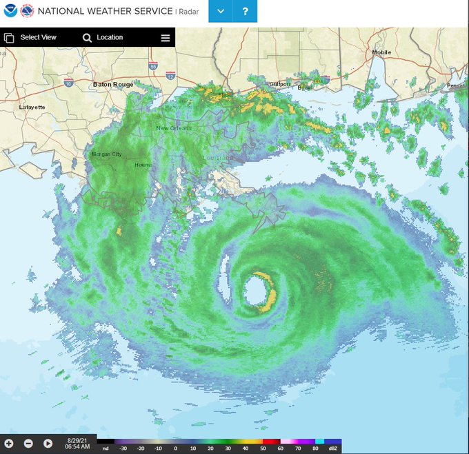 Seeing some extrapolated upper 920s mb now. Pretty incredible and near the worst-case scenario for the region. Based on the recent radar motion landfall should be around 10-12 this morning. Hopefully, a little bit of a west jog can occur so NOLA avoids the worse of it.