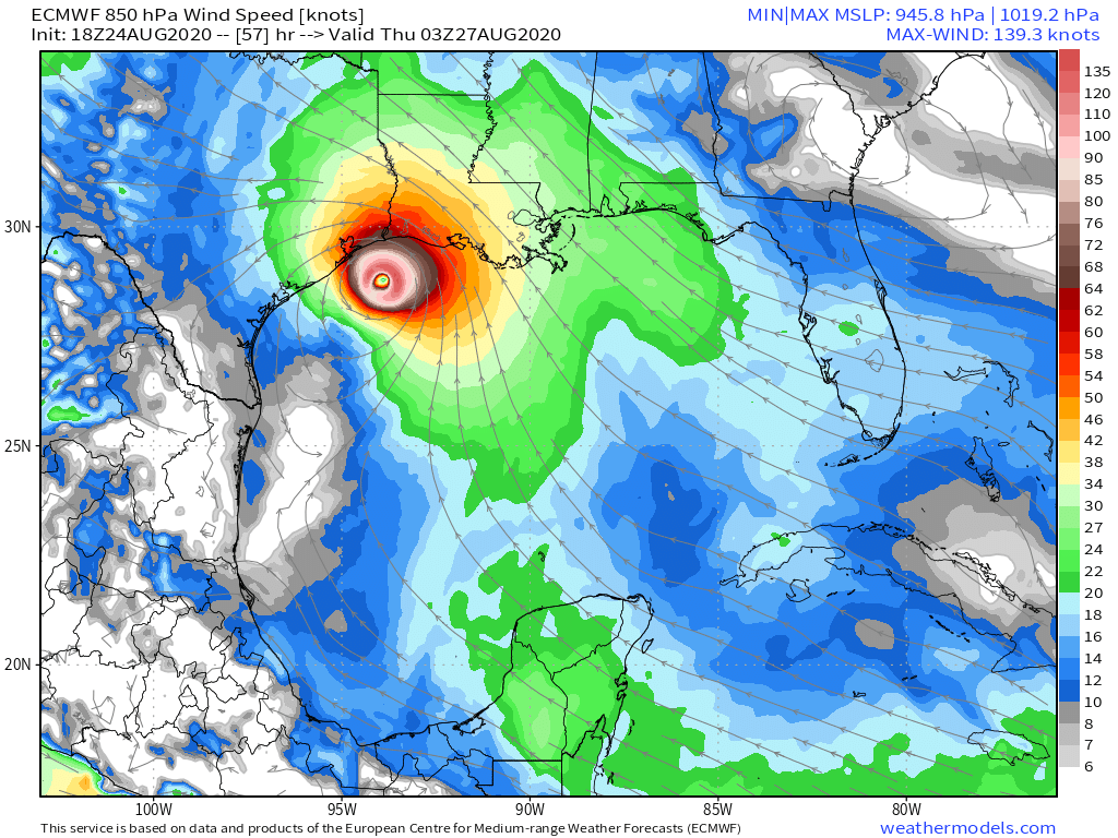 don wrote: Mon Aug 24, 2020 7:25 pm 18z EURO has landfall in Chambers County, that would be close enough to produce hurricane force winds in metro Houston.