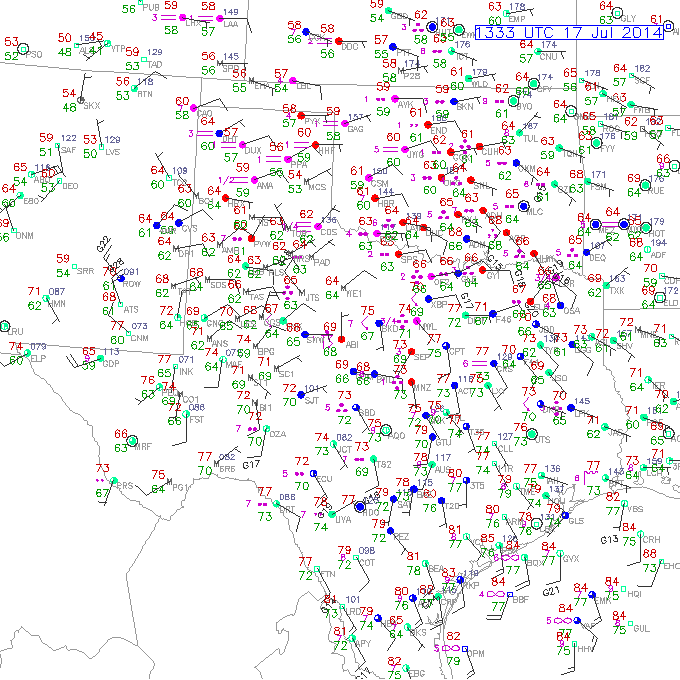 Keep an eye on the boundary that runs roughly from Galveston Bay on NW to near Childress, the Texas Panhandle and on up into the Colorado front range. Anywhere W of the boundary into W Texas has a rather unstable air mass with higher PW's near or slightly above the 2 inch mark. To the N and E of the boundary drier more stable air remains and should be a bit slower to moisten up until tomorrow. I had a heavy shower drop almost 1/4 inch of rain a couple of hours ago and you can see the cumulus clouds building in an uncapped environment.