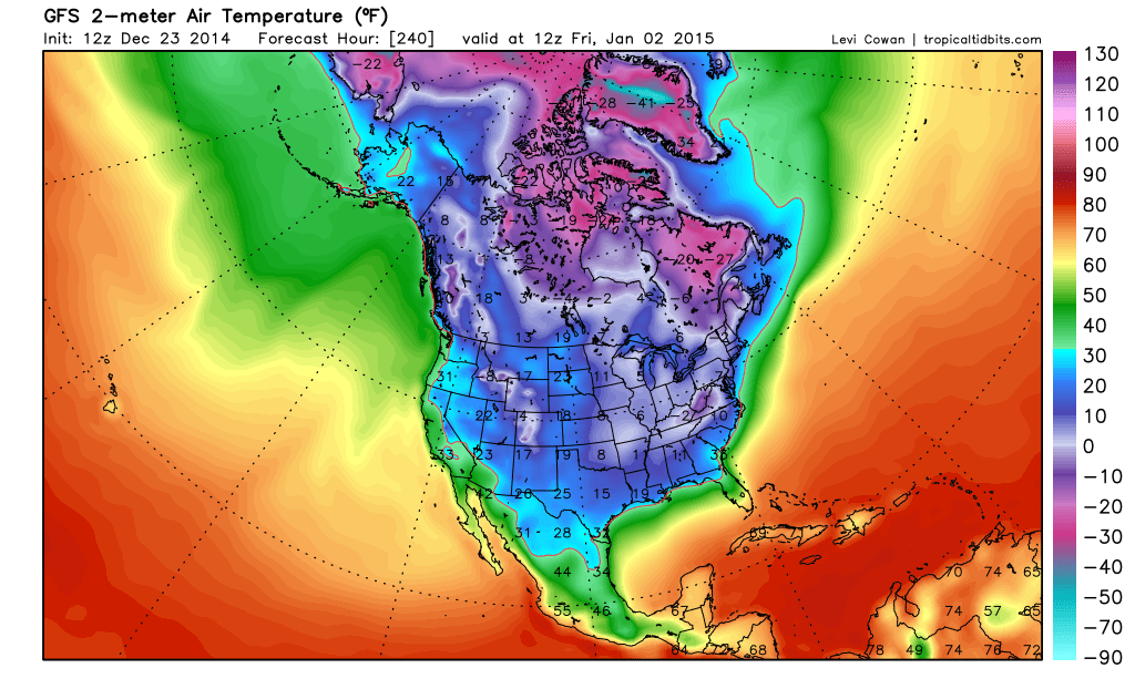 2 meter temperatures are disgustingly cold all the way to Coastal Texas and Louisiana on the 2nd of January via the long range GFS.