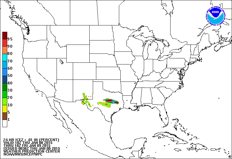 29F right now here in NW Harris County. The only real change I can see from over night is the freezing rain chances were introduced a bit further to the SW near and N of Corpus Christi. Both NWS CRP and HGX issued Special Weather Statements regarding two chances of wintry weather precipitation wise. One is with the second Arctic front tomorrow and the next chance would be Saturday night. Here are the morning discussions from the Weather Prediction Center and the graphics. Jeff sent out an briefing last night stating the he believed the graphics were "overdone", so be advised a lot of caution is being given before biting off on a solution that may bring wintry mischief across our Region including the Hill Country.
