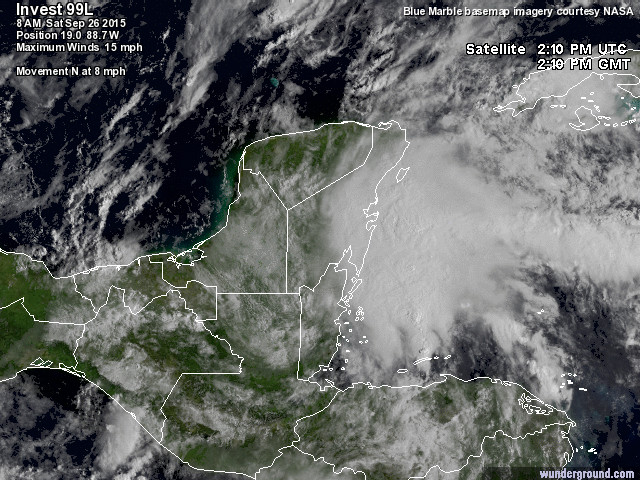 The area of disturbed weather currently over the Yucatan Peninsula has been declared INVEST 99L by the National Hurricane Center.