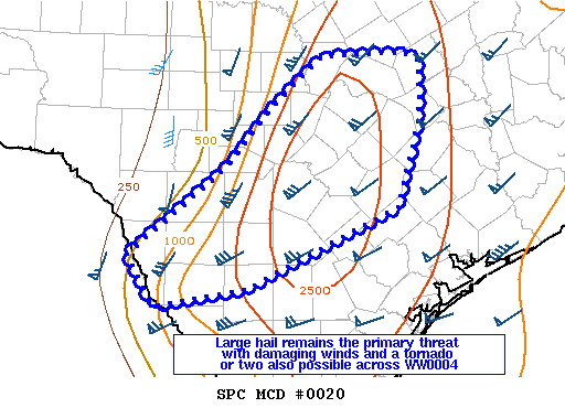 SUMMARY...A tornado watch downstream of WW0004 will be needed across