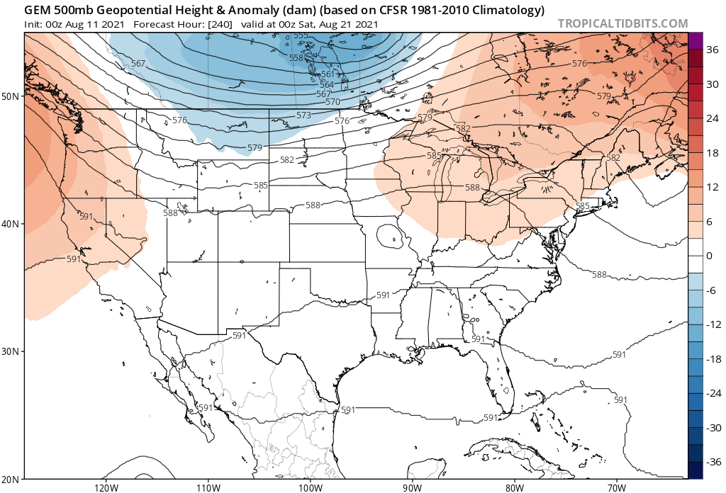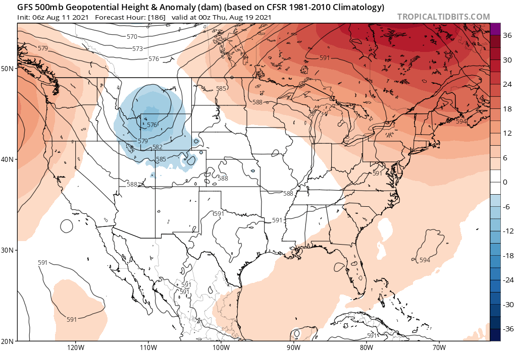 Yep, what has me a little more concerned about 95L is the upper level 500mb pattern,models are showing.With ridging over the east and a trough over the northwest. If 95l does get into the gulf that could allow it to head towards the northwestern gulf.Still a long ways out though and things are likely to change.Cpv17 wrote: ↑Wed Aug 11, 2021 11:03 amI believe this one has a much greater chance at getting further west than Fred.Kingwood36 wrote: ↑Wed Aug 11, 2021 10:54 am 95l looks to be heading the same direction as Fred..maybe it's FL yr to get all of them lol