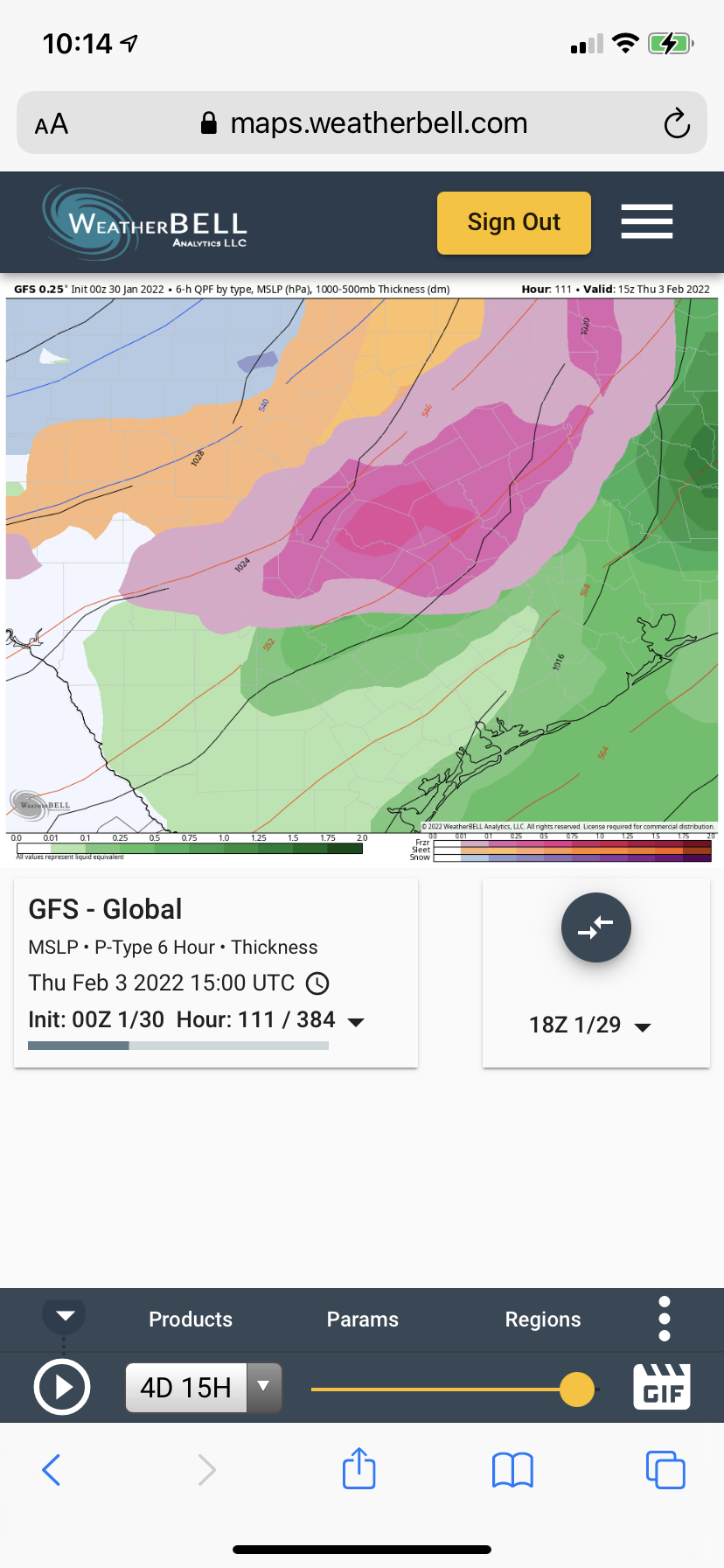 CPV17 Im looking at the 18z GFS run and it does bring sleet/ freezing rain into my area, thats what it shows for me on weatherbell, but their still is time for change and we probably wont have a good idea on whats going to happen until monday, but even if we do get wintry precip, the worst should still stay well to the north of us