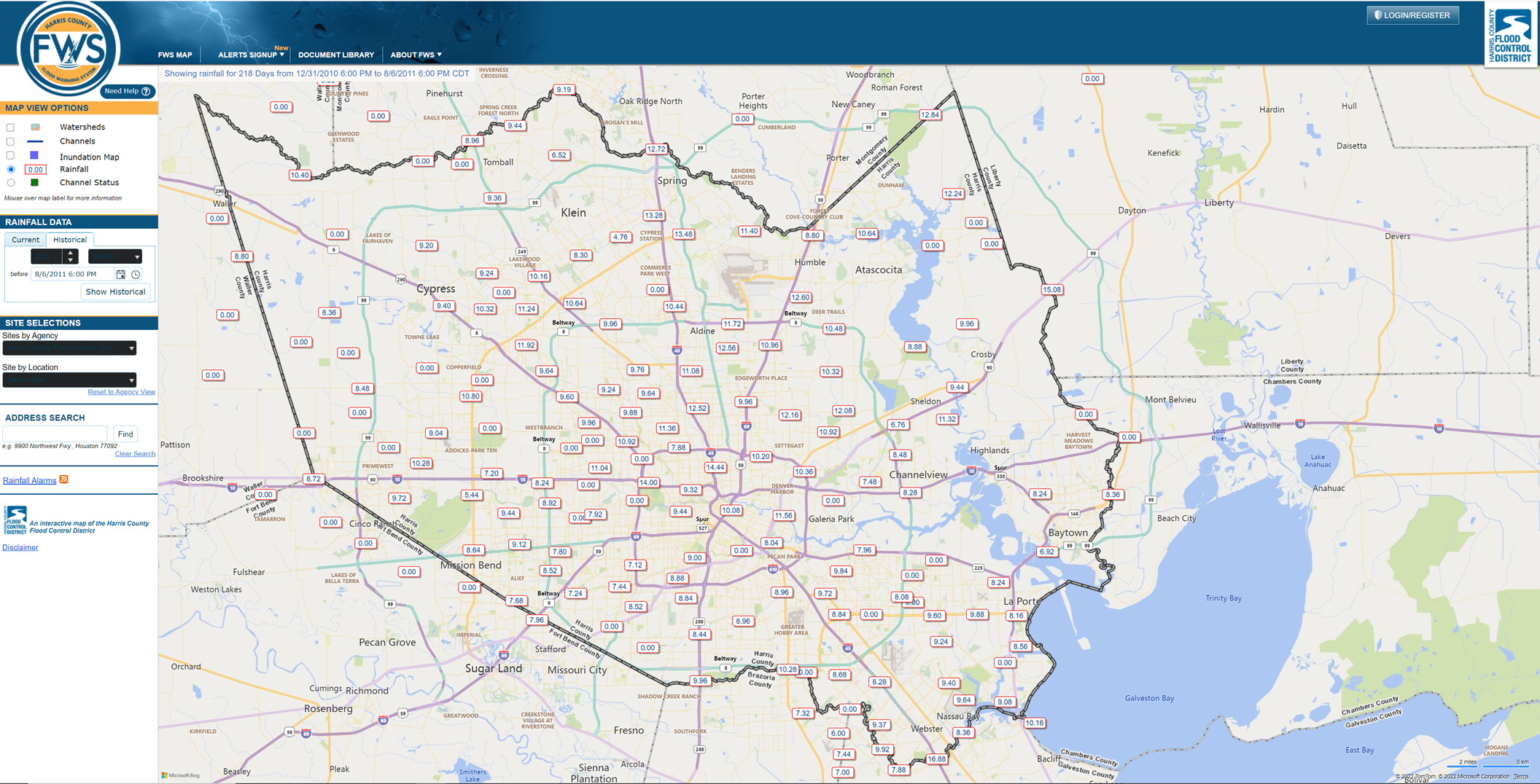 2011 Harris county rainfall totals from 12/31/2010 6PM to 8/06/2011 6PM: