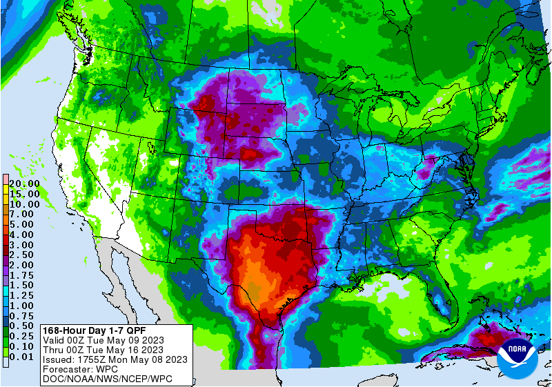 I am only going to show QPF's in the higher confidence period of now - 12th of May. the forecast is low confidence after that. Note that each solution has a different epicenter of rain. All about 2-3 inches. Local amounts will vary. Welcome to the Heisenberg Uncertainty Principle of Weather!